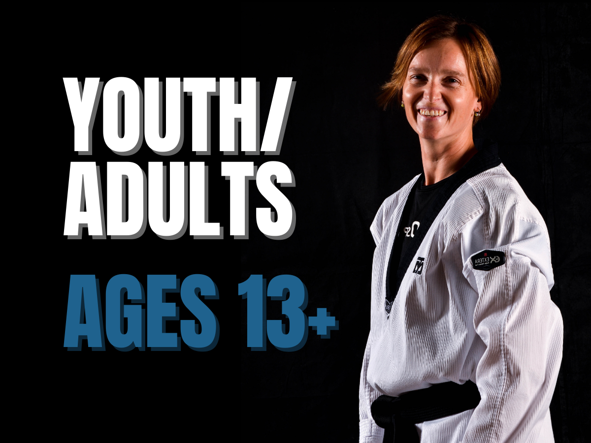 This program is optimized for our youth (ages 13-17) and adult (ages 18+) students. Students will be challenged to learn belt appropriate curriculum and enjoy classes that are a balance of fundamental Taekwondo training, conditioning, strength & stability development, and of course fun! Our aim is that our Youth/Adult students set goals that they work toward, developing a sense of accomplishment and confidence in their ability as they progress in belt levels.