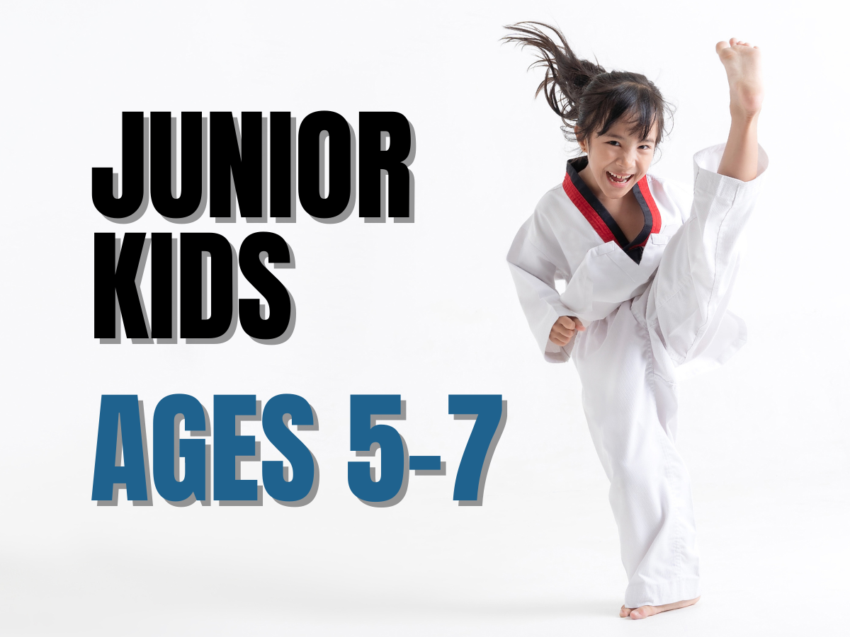 For our kickers aged 5-7, our Jr Kids program provides age appropriate learning and skill development that includes focus on balance, coordination, proprioception, teamwork, and self control. Our team of Instructors will guide your child through fun and engaging drills and games that build foundational Taekwondo skills moving them towards their first belt achievement!