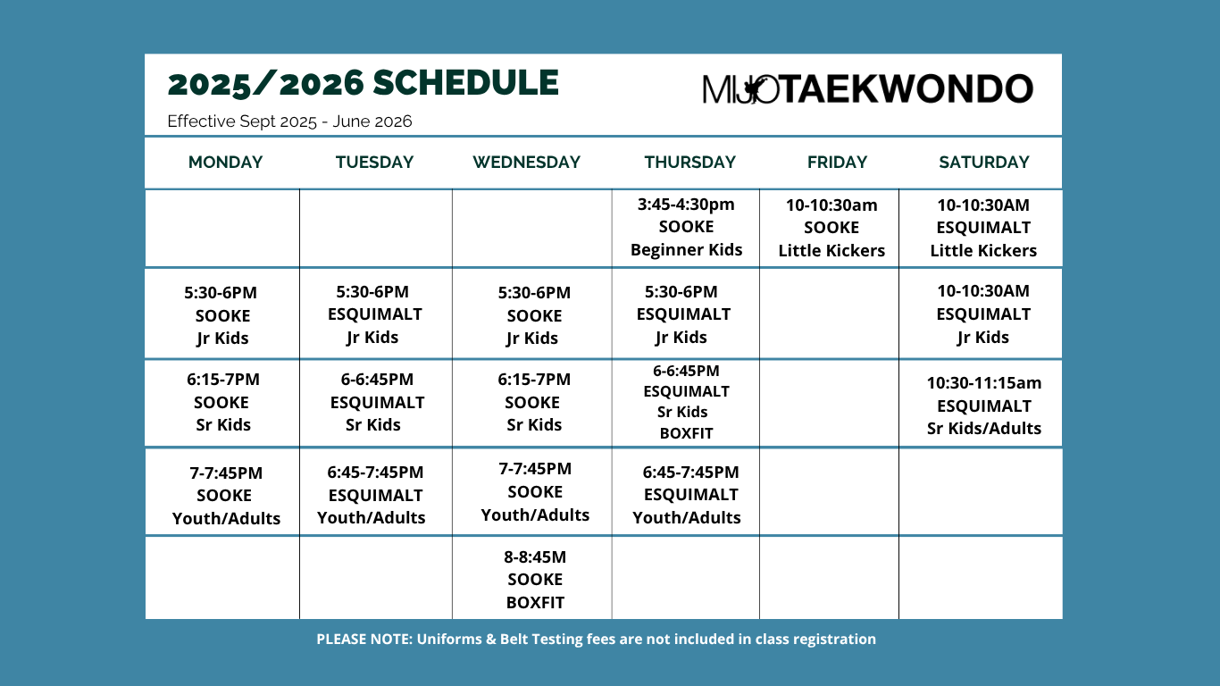 Registration for all classes is completed with the recreation centre in the location you would like to attend. Please visit their online registration pages (linked below) to register for the class of your choice! Search for "Mijo" to find all of our available classes.
